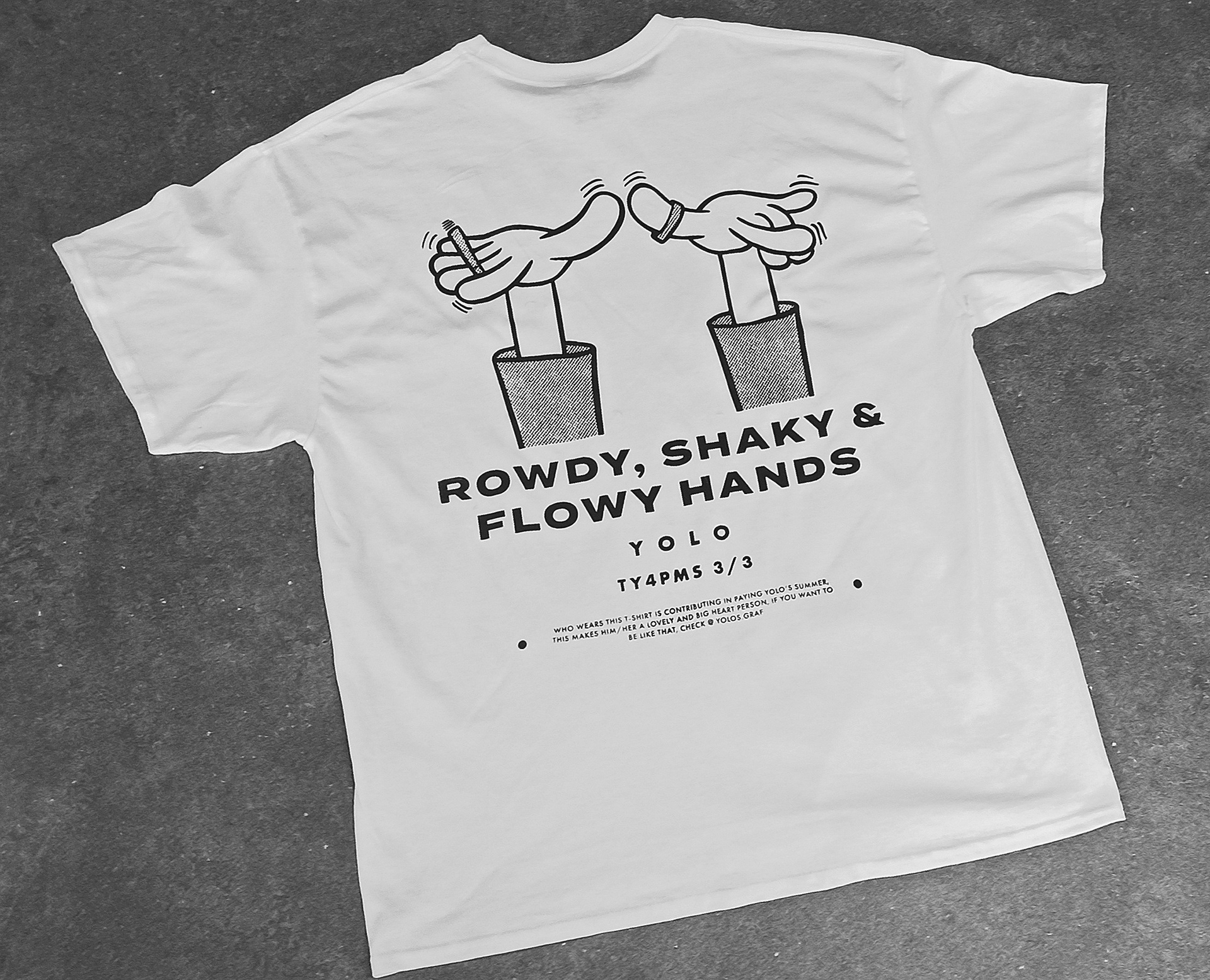 "Who wears this t-shirt is contributing in paying yolo's summer, this makes him/her a lovely and big heart person, if you want to be like that, check @yolo.graf" This collection relfects things that i enjoy during summer days applied to ilustration. Also has been created in my house garage, learning the screen printing technique for the first time and that's why they have their flaws but also makes each shirt have its unique touch.